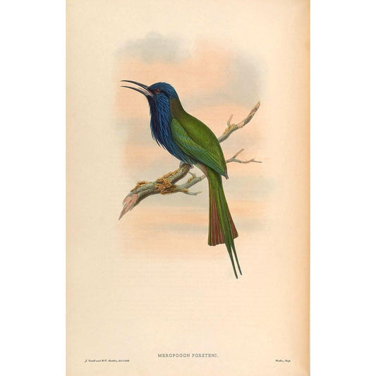 Phyllornis Cyanopogon Gold Ornate Wood Framed Art Print with Double Matting by CAG