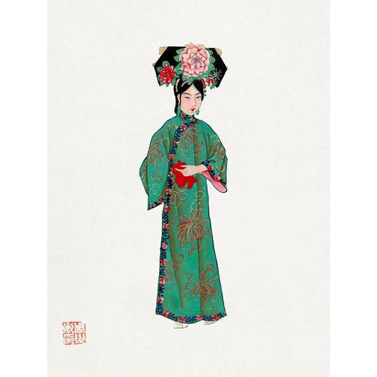 Chinese lady in green gown costume Black Modern Wood Framed Art Print by Vintage Chinese Clothing