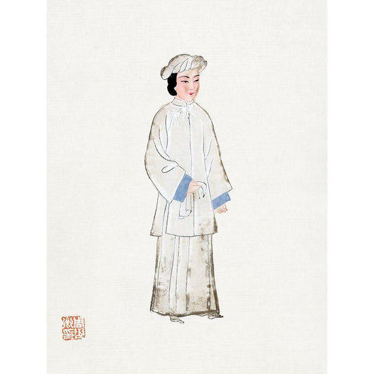 Chinese woman in coat Black Modern Wood Framed Art Print by Vintage Chinese Clothing
