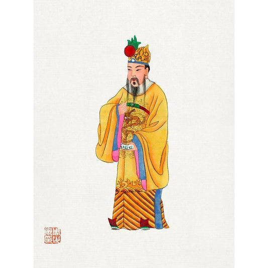 Man in yellow priest robe Black Modern Wood Framed Art Print by Vintage Chinese Clothing