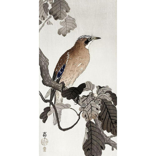 Jay on tree branch Black Modern Wood Framed Art Print by Koson, Ohara