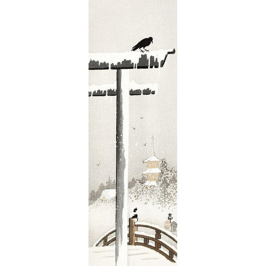Torii in the snow Black Modern Wood Framed Art Print by Koson, Ohara