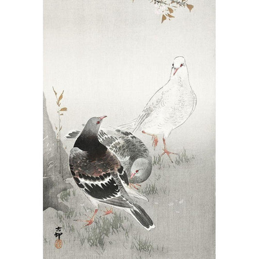 Three pigeons Black Modern Wood Framed Art Print by Koson, Ohara