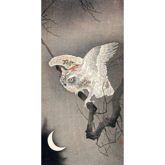 Scops Owl in Moonlight Black Modern Wood Framed Art Print by Koson, Ohara