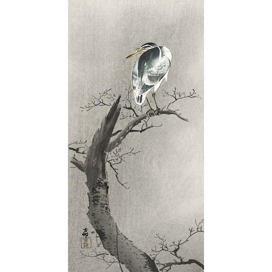 Kwak on branch Black Modern Wood Framed Art Print by Koson, Ohara