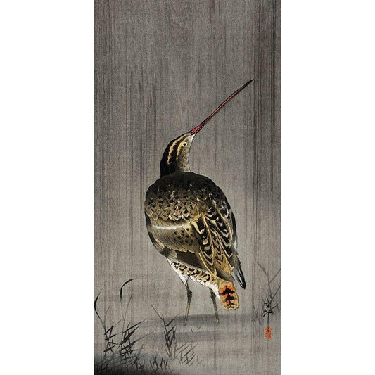 Snipe in the rain Black Modern Wood Framed Art Print by Koson, Ohara