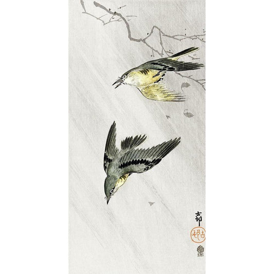Songbirds in rain Black Modern Wood Framed Art Print by Koson, Ohara