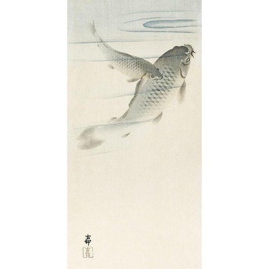 Carp Black Modern Wood Framed Art Print by Koson, Ohara