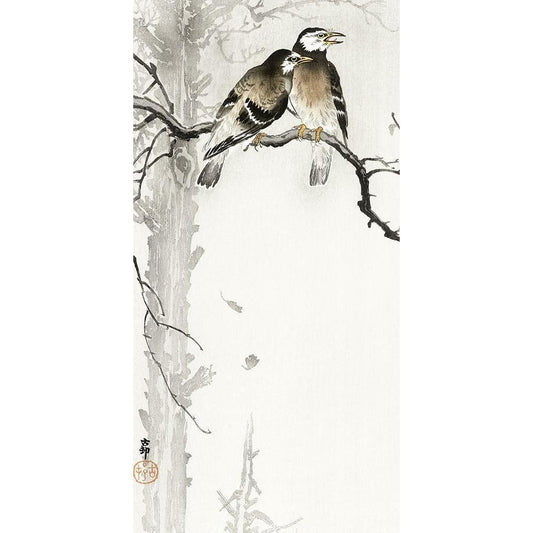 Two gray starlings Black Modern Wood Framed Art Print by Koson, Ohara