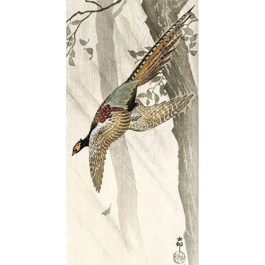 Flying pheasant Black Modern Wood Framed Art Print by Koson, Ohara