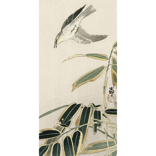 Wheatear in bamboo Black Modern Wood Framed Art Print by Koson, Ohara