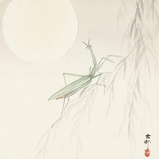 Praying mantis Black Modern Wood Framed Art Print by Koson, Ohara