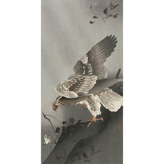 Eagle on branch Black Modern Wood Framed Art Print by Koson, Ohara