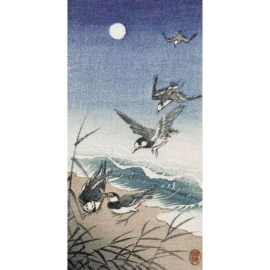 Birds at full moon Black Modern Wood Framed Art Print by Koson, Ohara