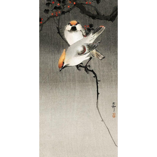 Bohemian waxwing birds Black Modern Wood Framed Art Print by Koson, Ohara