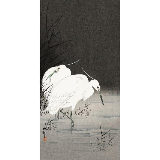 Two egrets in the reeds Black Modern Wood Framed Art Print by Koson, Ohara