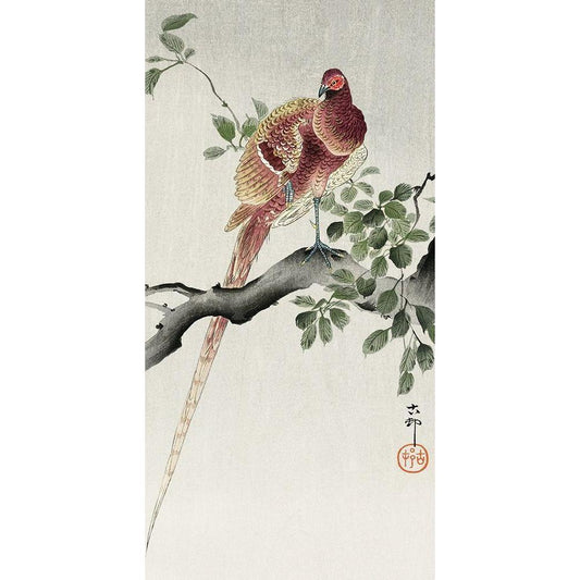 Copper pheasant Black Modern Wood Framed Art Print by Koson, Ohara