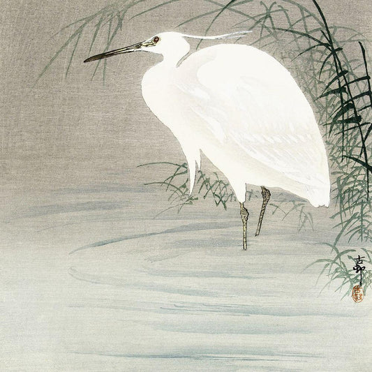 Little egret Black Modern Wood Framed Art Print by Koson, Ohara