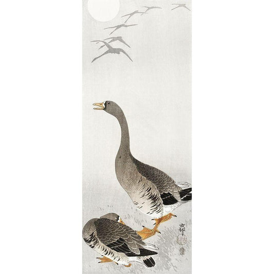 White-fronted goose at full moon Black Modern Wood Framed Art Print by Koson, Ohara