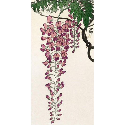 Blooming wisteria Black Modern Wood Framed Art Print by Koson, Ohara