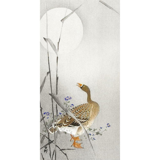 Goose at full moon Black Modern Wood Framed Art Print by Koson, Ohara
