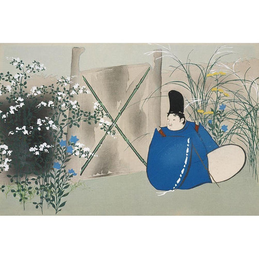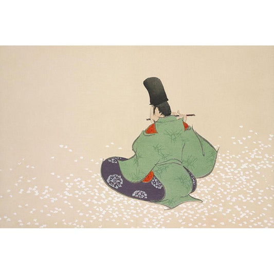 Flute player from Momoyogusa Black Modern Wood Framed Art Print by Sekka, Kamisaka