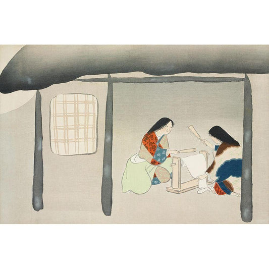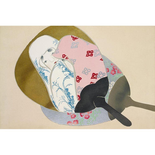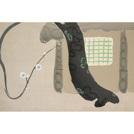 Kinuta from Momoyogusa Black Modern Wood Framed Art Print by Sekka, Kamisaka
