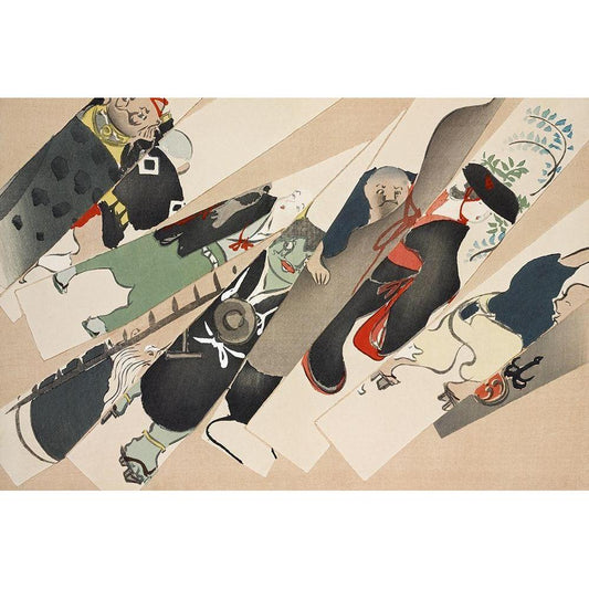 Demon from Momoyogusa Black Modern Wood Framed Art Print by Sekka, Kamisaka