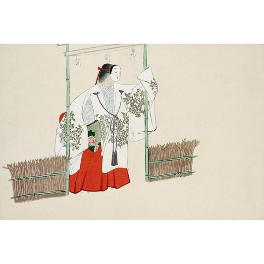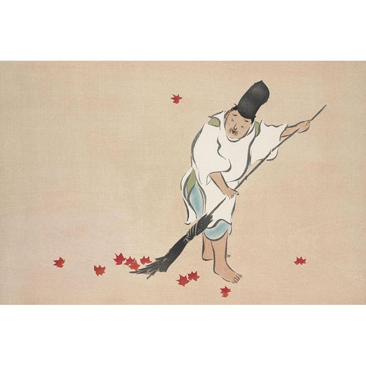 Raking from Momoyogusa Black Modern Wood Framed Art Print by Sekka, Kamisaka