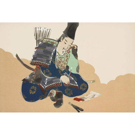 Samurai from Momoyogusa Black Modern Wood Framed Art Print by Sekka, Kamisaka