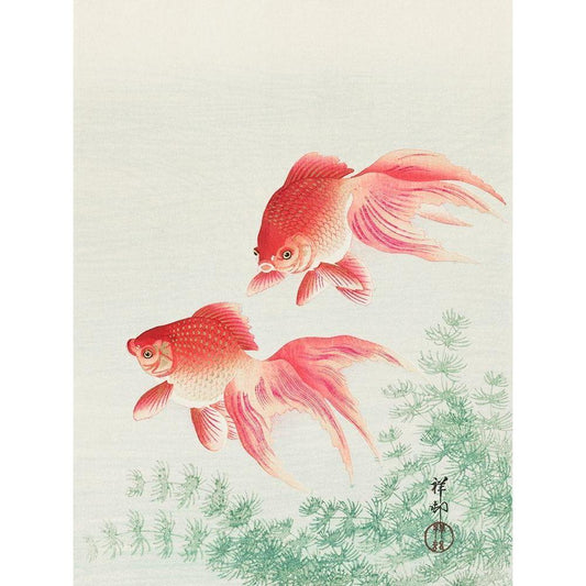 Two veil goldfish Black Modern Wood Framed Art Print by Koson, Ohara