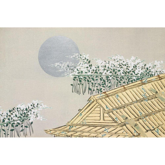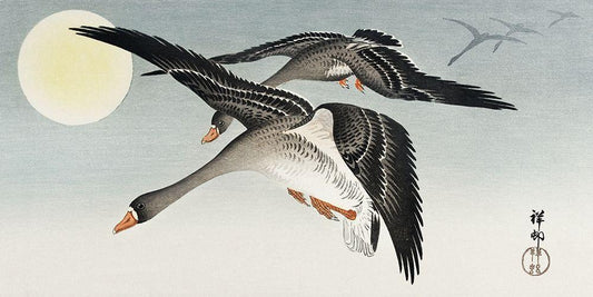 Birds at full moon Black Modern Wood Framed Art Print by Koson, Ohara