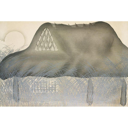 House from Momoyogusa Black Modern Wood Framed Art Print by Sekka, Kamisaka