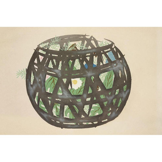 Basket from Momoyogusa Black Modern Wood Framed Art Print by Sekka, Kamisaka