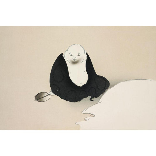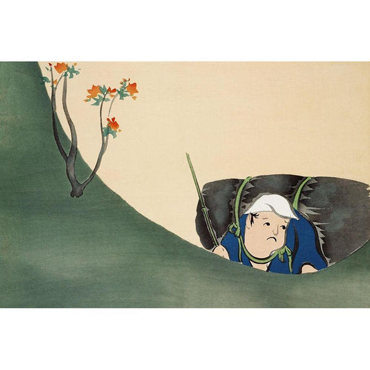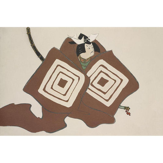 Masked man from Momoyogusa Black Modern Wood Framed Art Print by Sekka, Kamisaka