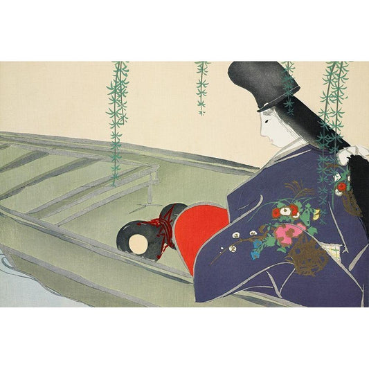 Boat from Momoyogusa Black Modern Wood Framed Art Print by Sekka, Kamisaka