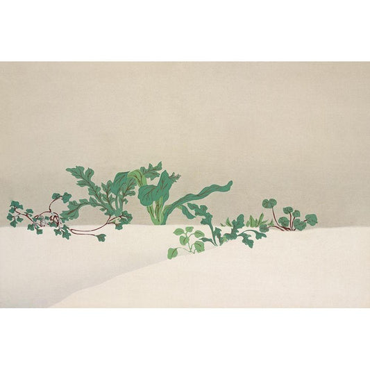 Green plants from Momoyogusa Black Modern Wood Framed Art Print by Sekka, Kamisaka