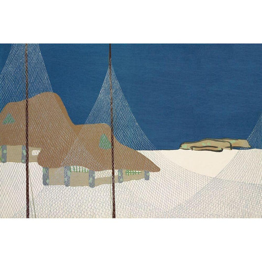 Fishing village from Momoyogusa Black Modern Wood Framed Art Print by Sekka, Kamisaka