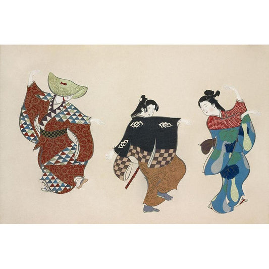 Dancers from Momoyogusa Black Modern Wood Framed Art Print by Sekka, Kamisaka