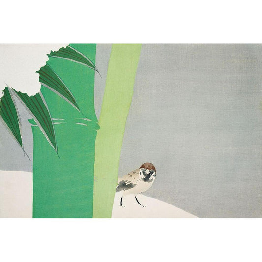 Sparrow from Momoyogusa Black Modern Wood Framed Art Print by Sekka, Kamisaka