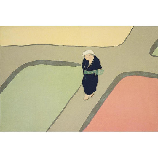 Path through the fields from Momoyogusa Black Modern Wood Framed Art Print by Sekka, Kamisaka