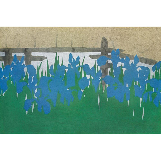 Irises from Momoyogusa Black Modern Wood Framed Art Print by Sekka, Kamisaka