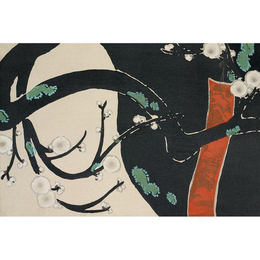 Blossoms from Momoyogusa Black Modern Wood Framed Art Print by Sekka, Kamisaka
