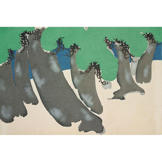 Trees from Momoyogusa Black Modern Wood Framed Art Print by Sekka, Kamisaka