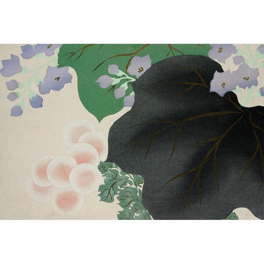 Flowers and leaves from Momoyogusa Black Modern Wood Framed Art Print by Sekka, Kamisaka