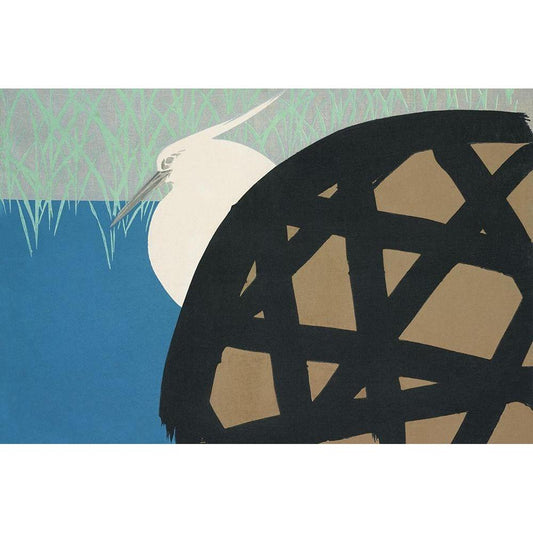 White heron from Momoyogusa Black Modern Wood Framed Art Print by Sekka, Kamisaka