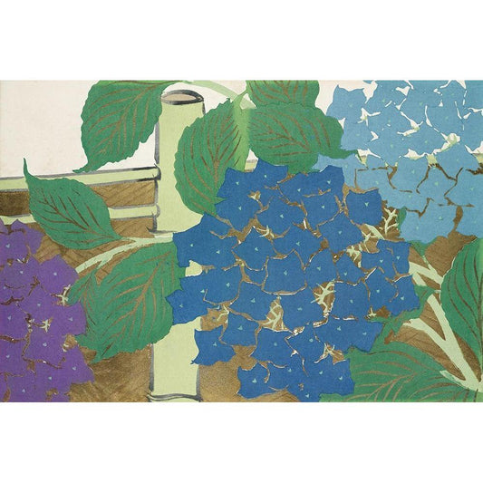 Hydrangea from Momoyogusa Black Modern Wood Framed Art Print by Sekka, Kamisaka