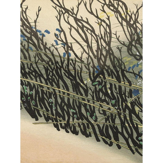 Hedge from Momoyogusa Black Modern Wood Framed Art Print by Sekka, Kamisaka