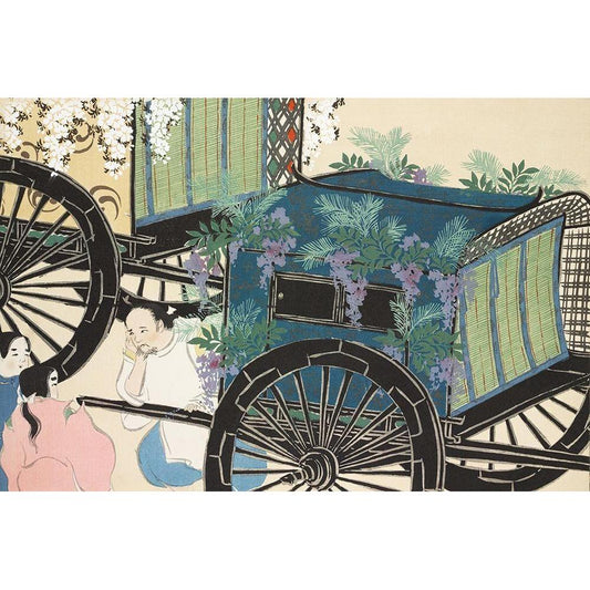 Wagon from Momoyogusa Black Modern Wood Framed Art Print by Sekka, Kamisaka