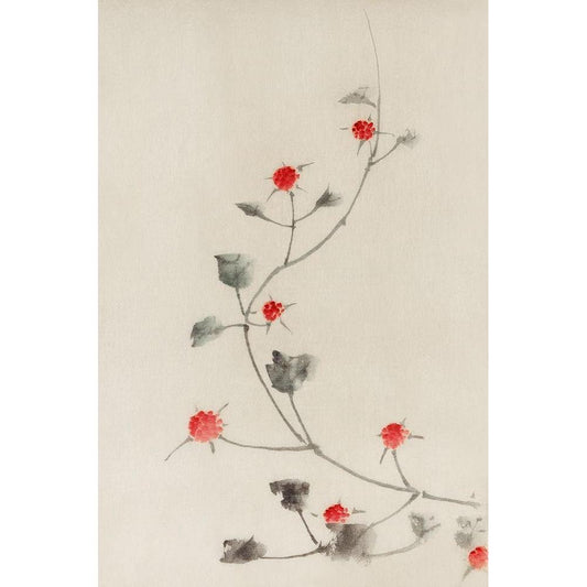 Small Red Blossoms on a Vine Black Modern Wood Framed Art Print by Hokusai, Katsushika